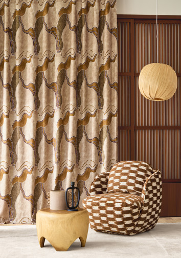 From the endless horizons of Australia and the pure beauty of untouched materials from its striking landscapes comes the “BRISBANE” collection of curtain and upholstery fabrics and voiles. The prints are worked with beautiful dimensions thanks to the meticulous embroideries, decorative yarns, appliqué cordage and velvets, in a warm and earthy palette to represent the beauty of landscapes far beyond the Indian Ocean…