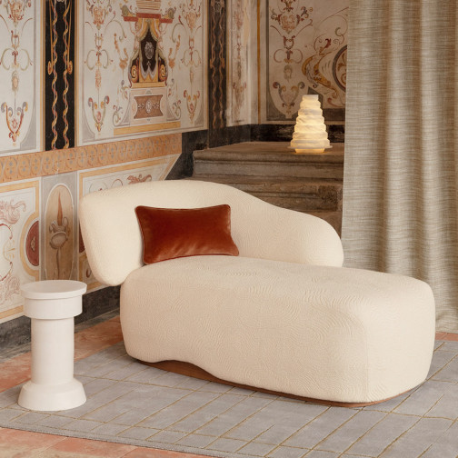 Mohair and virgin wool, thick cloud-like loops, fluid waves, or delicately cracked textures... Following on from a first edition that celebrated the nobility of natural fibers, Wool and Linen 2 brings together new fabrics that invite blissful stillness. Linen and twisted cotton interact with curly wool and bamboo, creating fabrics with a soft comfort, puffy or subtly textured reliefs, ennobled here and there with silky, golden, metallic threads. Curtains, seats, cushions, and bedspreads are adorned with a reassuring warmth and deep softness, imbued with luxury and delicacy.