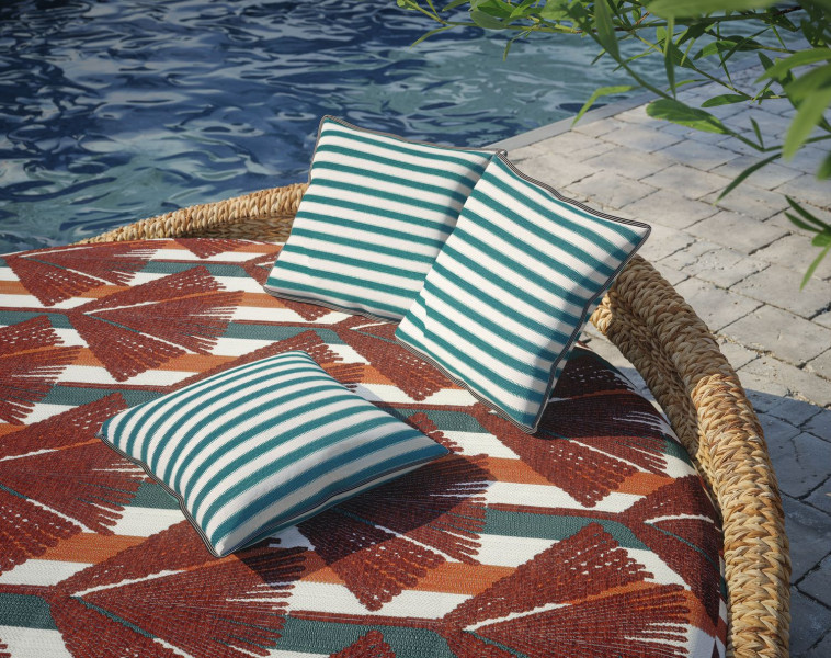 For the Navajo, hozho is an invitation to live in harmony, respecting the balance of nature. Visually symbolised by woven patterns, each line and each design leads to beauty. The collection cultivates this philosophy by offering a slection of outdoor fabrics inspired by these figures. They have excellent colorfastness when exposed to light, good resistance to chlorinated and seawater, mildew and are quick-drying. Perfectly suited to life in the open air !