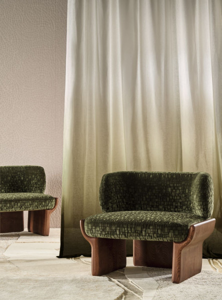 NOUVEL ANGLE takes an innovative look at materials and patterns The collections draws on the visionary style of modernism with its clean lines, balanced shapes and innovation. The satiny fabrics subtly catch the light alongside matte and structured textures. Each fabric has been designed for seating and has a strong visual identity inspired by luxury and modernity.