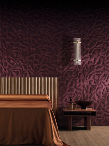 Designed and manufactured in France, this 3D collection combines a sensory approach with acoustic performance. Its reliefs, enhanced by the patina of time, evoke the beauty of the elements revealed over the years. Its organically inspired patterns create a dialogue between light and shadow. Materials play their own part, with velvet seducing with its depth and linen with its timeless elegance. The volumes soften the sounds in a hushed atmosphere, emphasised by a range of muted colours.