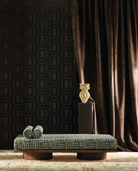 Casamance celebrates the centenary of the decorative arts exhibition and references the iconic locations of Paris, the hushed atmosphere of its private mansions and their Art Deco-inspired leather-upholstered salons through its ODEON collection. The collection responds to this refined luxury with noble materials, exclusive designs and sophisticated techniques. A range of deep colours complements the patterns, metallics and velvety softness of the suede.
