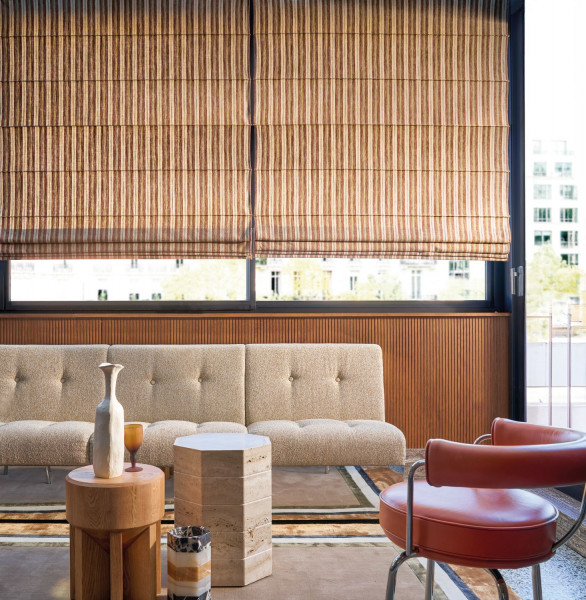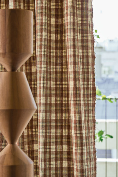Loin des sentiers habituels, empruntant un chemin menant jusqu’à l’Inde, terre emblématique des matières naturelles, « Vagabond » nous dévoile une sélection de trois étoffes à l’esprit bohème. Uni, rayures ou petits carreaux, chaque création porte le charme de la tradition et évoque les étoffes artisanales comme les madras et les gamchas. Tissée avec un fil unique de coton et de lin, en chaîne comme en trame, la construction jacquard leur confère une texture irrégulière. Un aspect brut affirmé et un tombé d’une élégante nonchalance définissent cette collection intemporelle d’une belle matité, destinée aux rideaux.