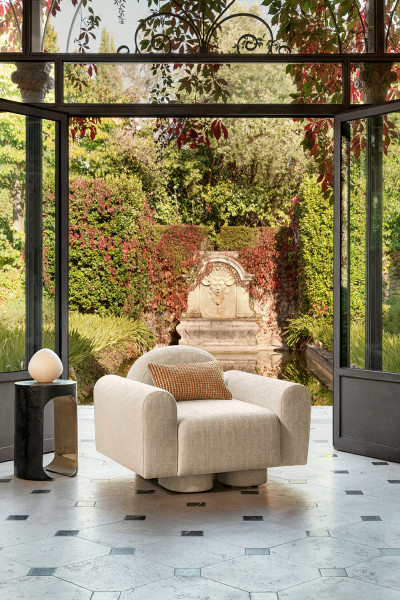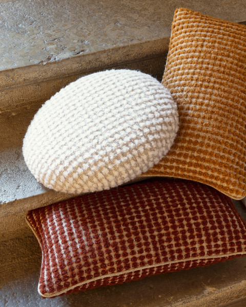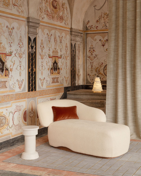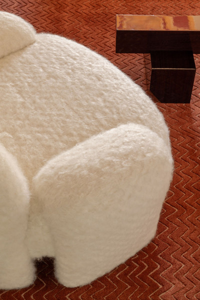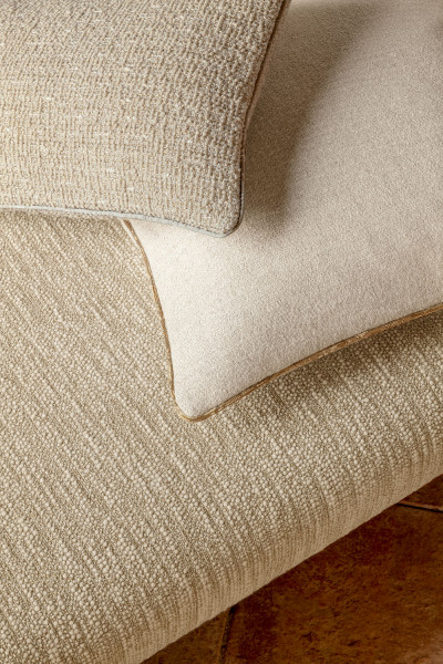Fourrure de Mohair et laine vierge, épaisses bouclettes aux allures nuageuses, ondulations fluides ou contextures délicatement craquelées… Dans la continuité d’une première édition qui célébrait la noblesse des fibres naturelles, Laine et Lin 2 réunit de nouvelles étoffes qui appellent à l’immobilité bienheureuse. Le lin et le coton torsadé y dialoguent avec la laine bouclée et le bambou, façonnant des étoffes au confort moelleux, aux reliefs gonflants ou subtilement texturés, qu’ennoblissent çà et là des fils soyeux, dorés, métallisés. Rideaux, assises, coussins ou jetés de lit se parent d’une chaleur rassurante et d’une douceur profonde, empreintes de luxe et de délicatesse.
